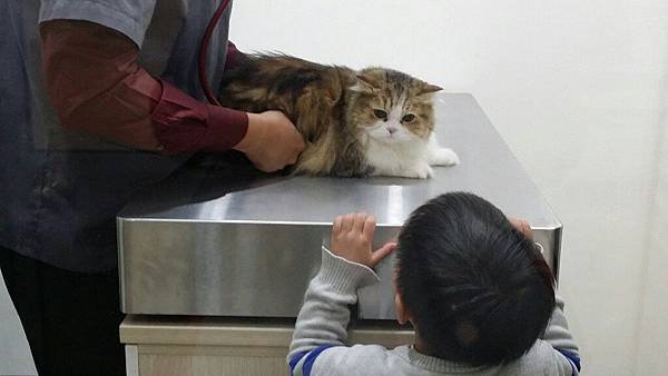 光著腳丫子跑到診間跟貓貓對看XDDD